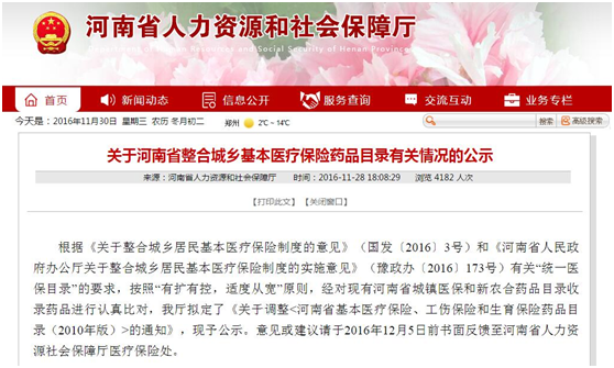 根據(jù)《關(guān)于整合城鄉(xiāng)居民基本醫(yī)療保險(xiǎn)制度的意見》(國(guó)發(fā)〔2016〕3號(hào))和《河南省人民政府辦公廳關(guān)于整合城鄉(xiāng)居民基本醫(yī)療保險(xiǎn)制度的實(shí)施意見》(豫政辦〔2016〕173號(hào))有關(guān)“統(tǒng)一醫(yī)保目錄”的要求,河南省人力資源和社會(huì)保障廳對(duì)《河南省基本醫(yī)療保險(xiǎn)、工傷保險(xiǎn)和生育保險(xiǎn)藥品目錄(2010年版)進(jìn)行調(diào)整。
